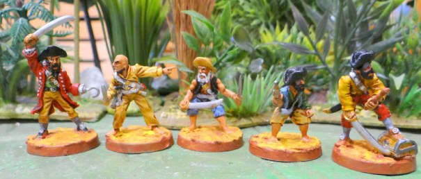 Ce sont des figs Eureka caractéristiques du graveur c’est à dire « minces » et mesurant un vrai 25 mm. Les bras sont amovibles et la pochette propose plusieurs options de bras.Elles vont remplacer les corsaires actuellement en place qui proviennent d’un équipage de Cortes. donc sans réel rapport avec le bateau bien que ces dernières soient assez « passe-partout ».Le pont arrière nouvellement occupé. Cape rouge à droite un marin conquistador de chez Outpost.Le pont avant.