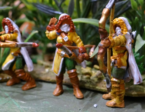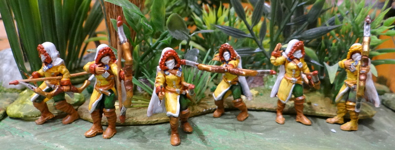 Compte tenu du costume, c’est le coté neige pour cette unité. La gamme comprend une figurine tirant depuis une fourche d’arbre mort mais je ne l’ai pas encore imprimée. A noter que certains modèles comportent des flèches très très fines « sur le départ », elles sont extrêmement fragiles et pas adaptées à une manipulation fréquente. Je les ai pratiquement toutes cassées lors de la mise en peinture.