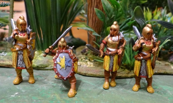 Je me lance dans la mise en couleur de mes tirages résine imprimés par mes soins. Ils sont, de fait, beaucoup plus légers que leurs semblables en métal. Je commence par l’armée amazone fantastico-médiévale de Soleige du programmeur Eskice. Il s’agit pour commencer d’une petite centaine de figurines de fantassins 25 mm. Elles peuvent être utilisées en skirmish (genre congo) où comme armée médiévale.