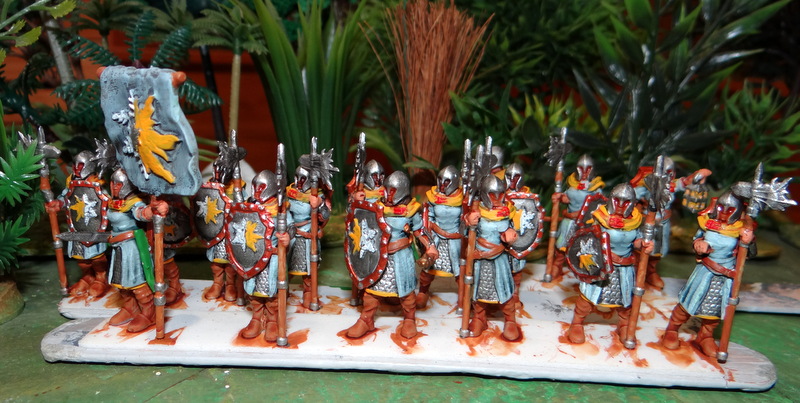 Toujours pas de socles mais l’affaire se précise; j’arrive maintenant à maitriser un logiciel de tranchage qui va me permettre d’imprimer des socles ronds. Les gardiennes de la cité sont armées de super hallebardes et portent finalement une tenue assez semblable à celles des autres formations. J’ai cependant choisi une autre couleur d’uniforme.Pour la garde de nuit, l’unité intègre une porteuse de lanterne ici à droite. Il y a également une officier !L’armée attend maintenant sa cavalerie. Eskice propose une cavalerie lourde avec de grosses lances médiévales, 5 modèles sont dispo. . Je n’ai encore rien imprimé.
