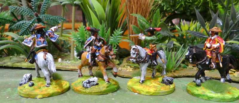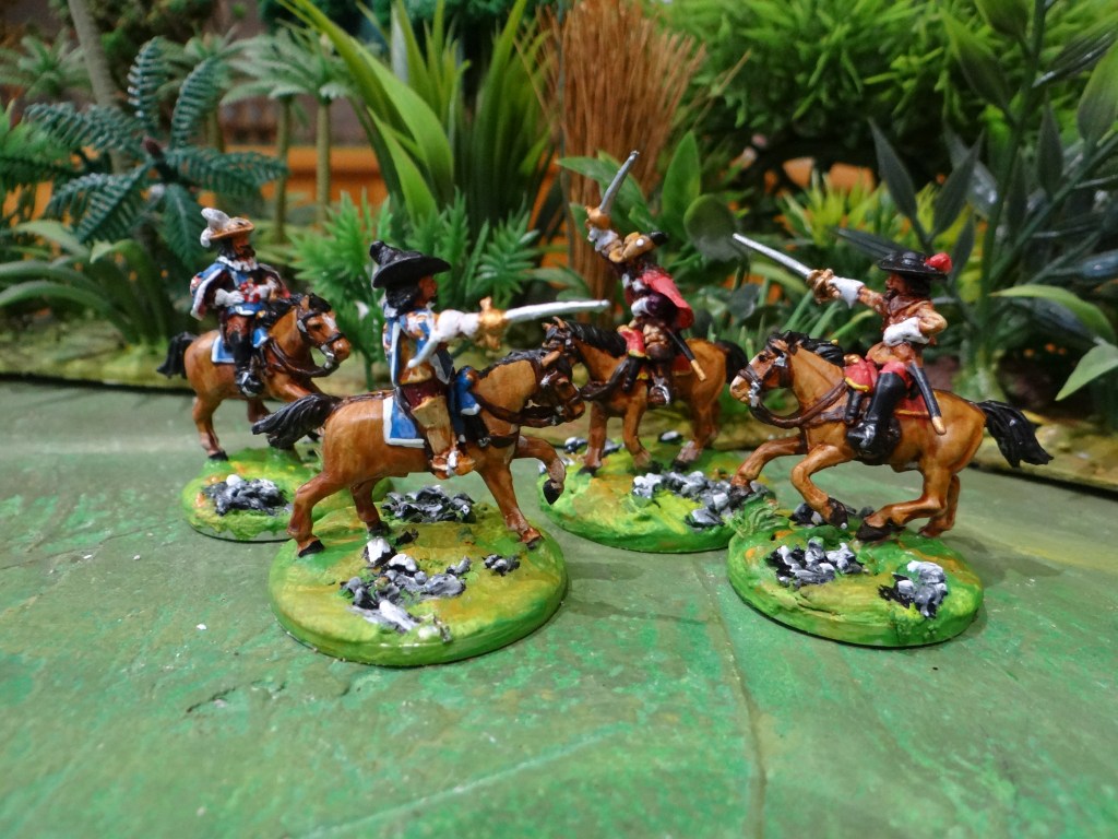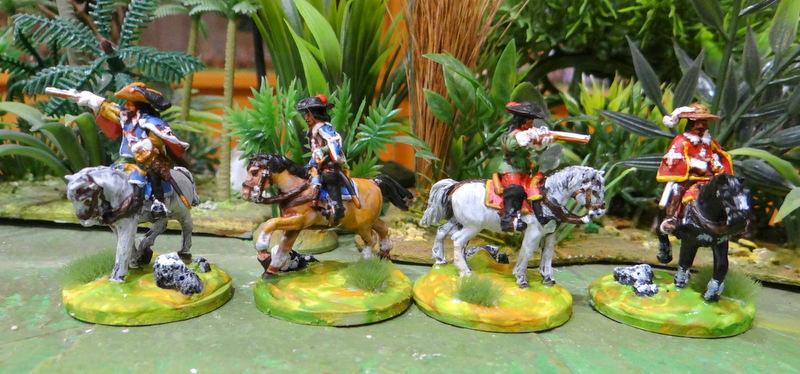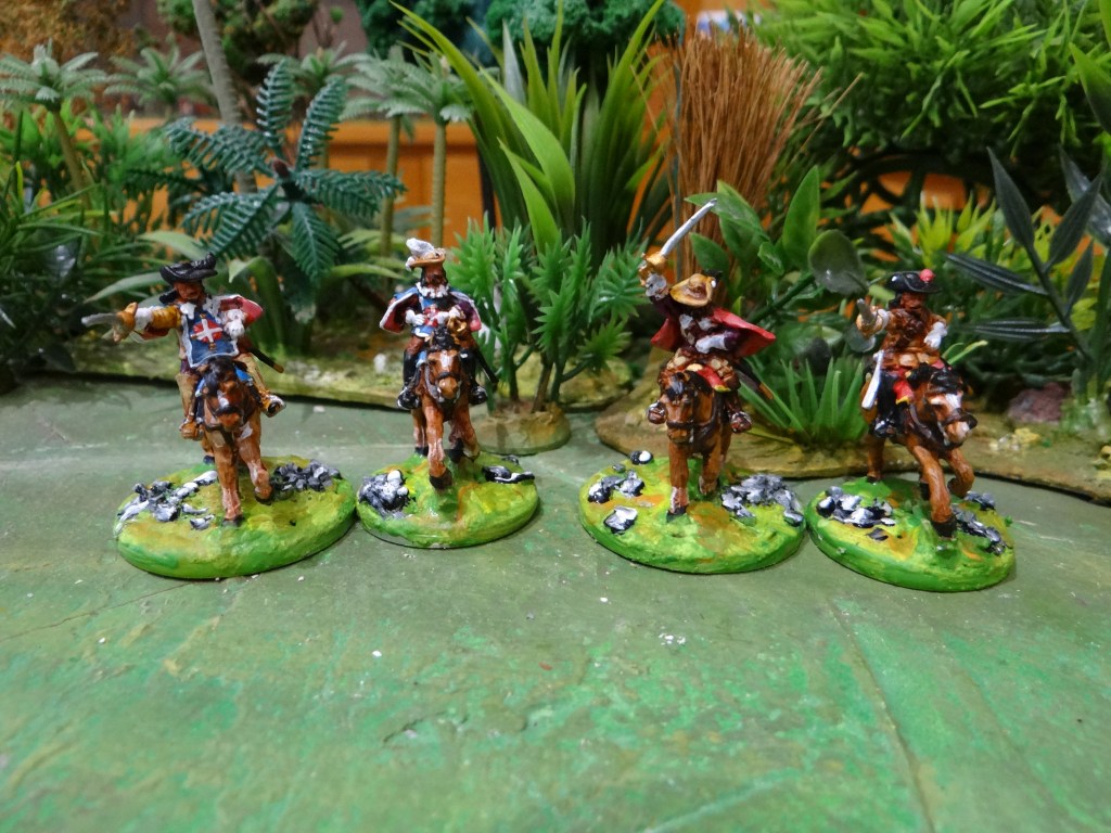 Les « mousquetaires » à cheval, une dizaine me suffira. A gauche les mousquetaires du roi , à droite les hommes du cardinal. En fait ils sont tous permutables seules les couleurs retenues les distinguent.