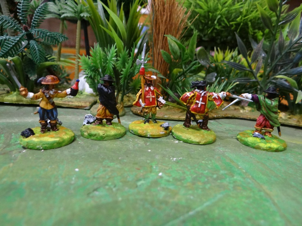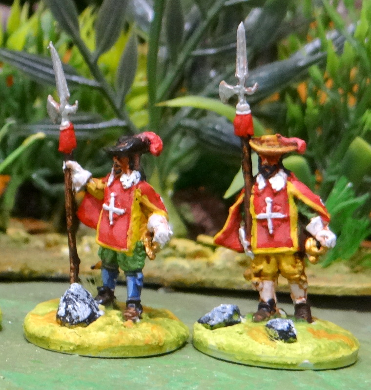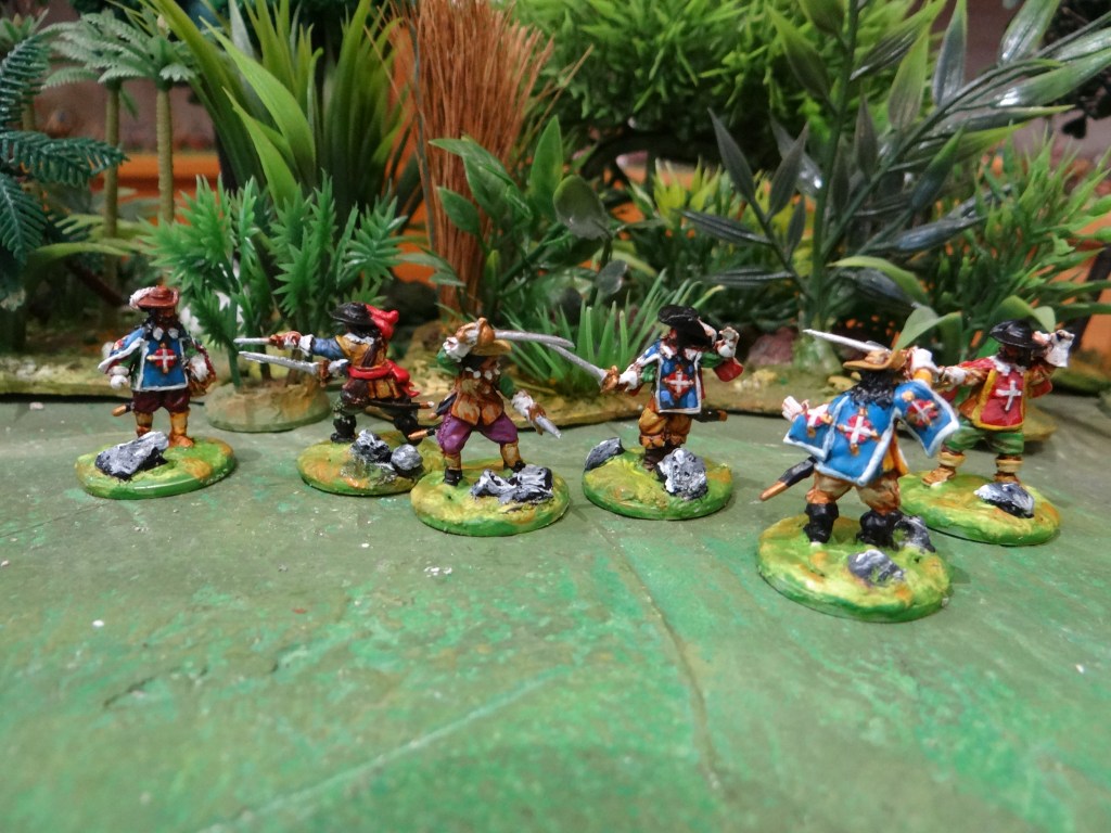 Même article mais nouvelle fournée avec 4 mousquetaires dont 3 arquebusiers et 2 gardes du cardinal. Avec 49 figurines peintes, la moitié du stock de piétons reçus est atteinte.