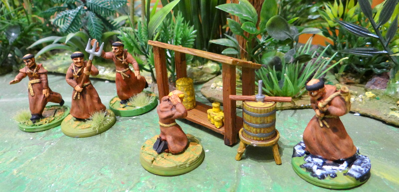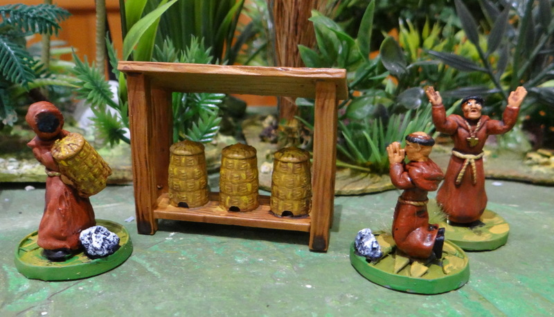 Le 28 arrivent les derniers moines de la série « âge des Vikings ». Pressoir à miel et structure pour ruches d’un côté et reste des moines fuyant une incursion Viking de l’autre. Dans la série, il y a aussi 2 morts que je n’ai pas imprimés.