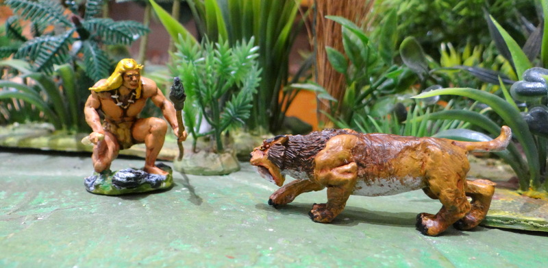Un modèle sympa et gratuit trouvé sur le net. Rahan le fils des « âges farouches » face au smilodon, un classique. Son collier de dents va grossir !