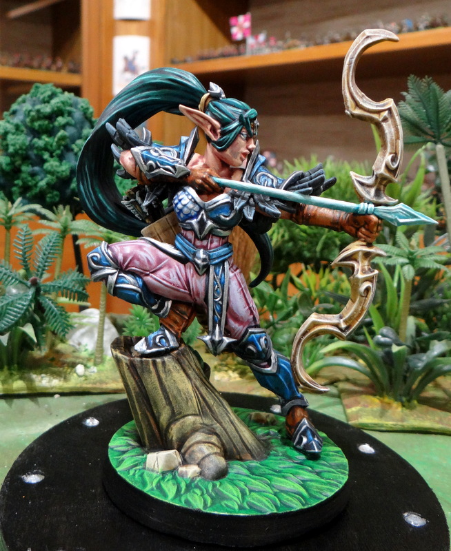 Le modèle a été acheté, j’ai assuré l’impression et le dimensionnement (environ 14 cm du bout du pied au sommet de l’arc), Rasorspoon a peint la figurine avec son talent habituel.