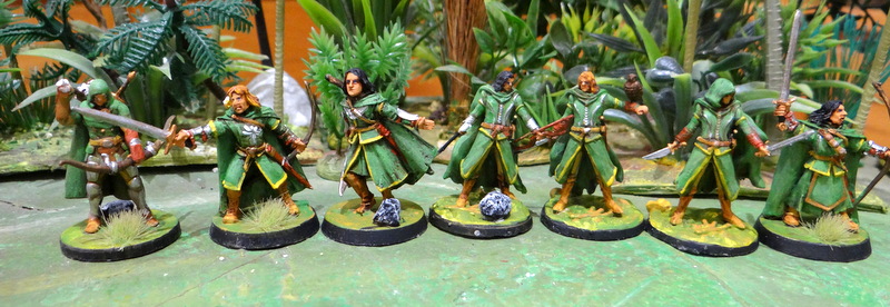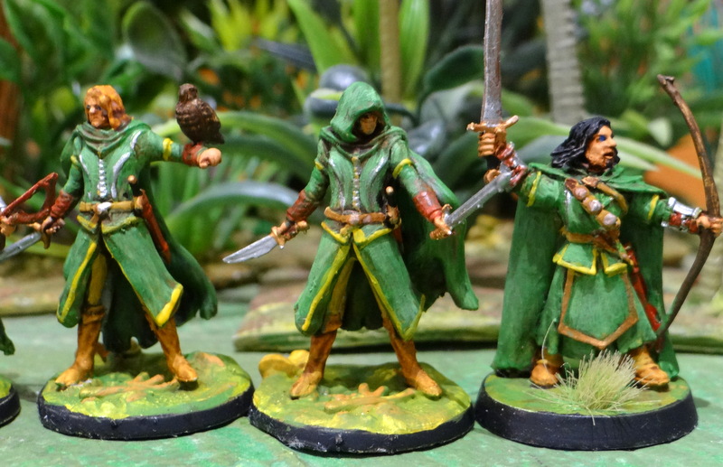 Nouvelle incursion dans la terre du milieu avec ces rangers du Gondor menés par Faramir (2eme à gauche). Il s’agit là d’un mélange de figurines games workshop en métal et d’impressions résine pour les 1er, 4, 5, 6 en partant de la gauche.
