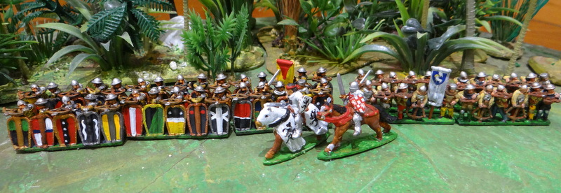 Pour finir, je complète les 42 arbalétriers Génois par 24 arbalétriers « normaux » ( sans pavois) et 2 chevaliers pour les commander.