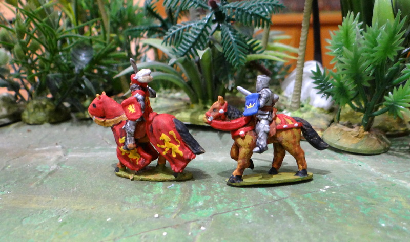 2 chevaliers en goguette ! Prémices de 2 unités à venir. Pour les cavaliers je n’ai pas augmenté la taille. des modèles.