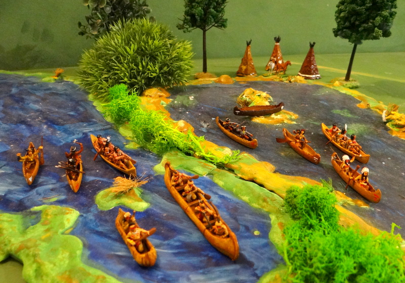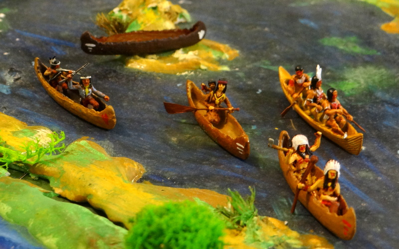 Interlude nautique : Des émigrés des grandes plaines remontent un supposé saint Laurent. Canoés de diverses marques dont 2 canoés Eskice 28 ramenés au 15 mm.