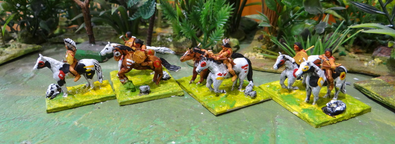 Premier lot d’indiens Eskice ramenés au 15mm. Un spécialiste des affaires indiennes m’assure qu’il s’agit des enfants de Sitting Bull qui ont piqué les chevaux du 7eme de cavalerie après Little big Horn ! Je ne suis pas loin de le penser !