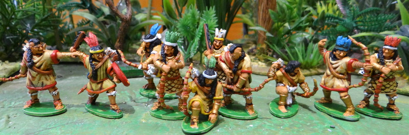 L’État tarasque était contemporain de l’Empire aztèque, avec lequel il entretenait des rapports souvent conflictuels. D’ailleurs l’expression P…. de tarasques chère à nos banlieues a surement une racine aztèque. Décimés par la variole apportée par les Espagnols les Tarasques ne résistèrent pas à l’envahisseur venu chercher de l’or. Les conquistadors assassinèrent d’ailleurs leur dernier roi (une vieille habitude ibérique !). Leur arme de prédilection semble être l’arc (même les chefs en sont dotés). Les Tarasques avaient la particularité de savoir travailler le métal contrairement aux Aztèques, ce qui ne leur a pas servi à grand-chose ! Le territoire tarasque s’appelle de nos jours : le Michoacán. Le kickstarter : « childrens of the sun » offre la possibilité de constituer une armée Tarasque, pourquoi s’en priver ? Après les Tlaxcalans de chez Outpost (qui semble avoir disparu du net depuis la pandémie !), je vais donc imprimer une 50aine de ces braves Tarasques.