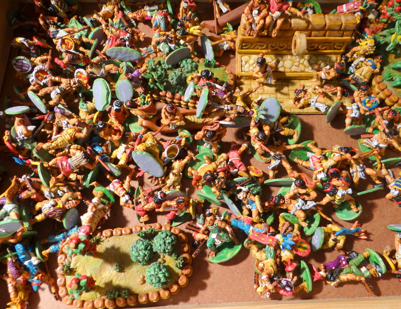 Vue de mon tiroir à aztèques. Ils attentent mon choix de soclage : socles ronds ou barrettes j’hésite !