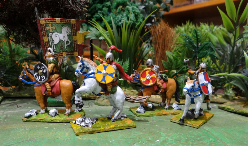4 cavaliers saxons de l’excellent Aron d’Eskice. La « gravure’ des chevaux s’est améliorée. Ils sont maintenant parfaitement proportionnés et de bonne taille (par rapport à leurs cavaliers). Un détail, les jambes des cavaliers sont un peu courtes (manque un ou un mm et demi). On devrait les voir dépasser en dessous du cheval. Il manque un étrier à un des cavaliers. Ensemble sympa !