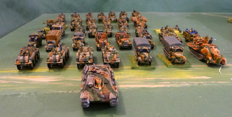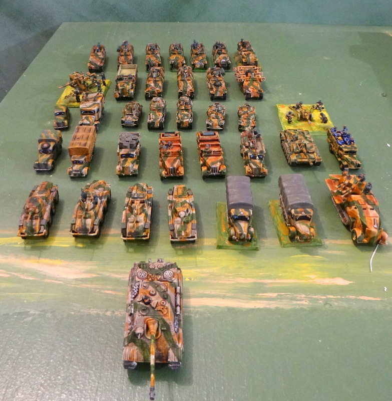 37 véhicules équipés viennent de rejoindre d’un coup mes effectifs WWII 15mm. Certains trainaient dans mes tiroirs depuis 10 ans peut être en tous cas depuis le pic de Flame of war auquel je m’étais essayé. 4 sdkfz du fond et le Jad panzer du front sont des Battle front, tout le reste a été imprimé par les soins au fond de mon garage.