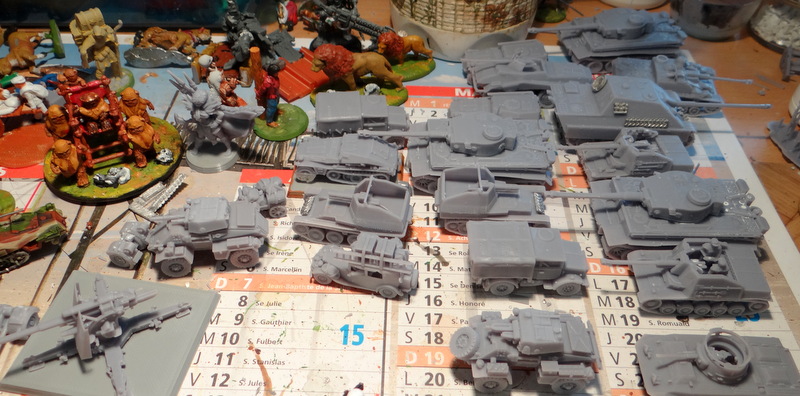 En attendant mieux ( des 28 mm antiques, mon crédo !), je poursuis la mise en couleur de 15 mm WWII Battlefront et autres que j’ai depuis des années et la mise à l’échelle de nouveautés d’Eskice.