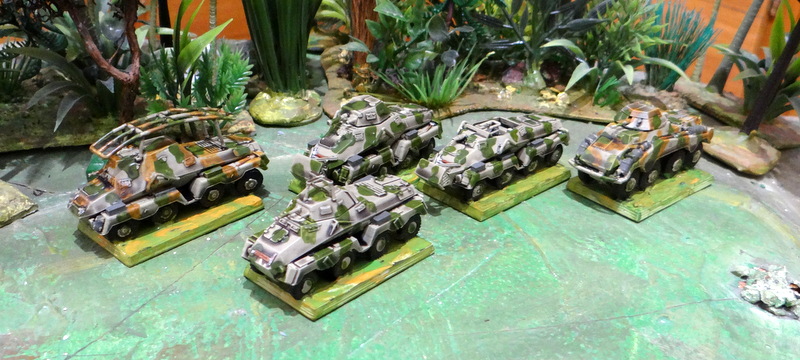 Mise en couleur d’impressions réalisées avant les grands froids; Il s’agit d’une patrouille de reconnaissance WWII équipée de SDKFZ 231 8 roues variés. 2 modèles auraient mérité d’être un chouia plus court mais ça va le faire !