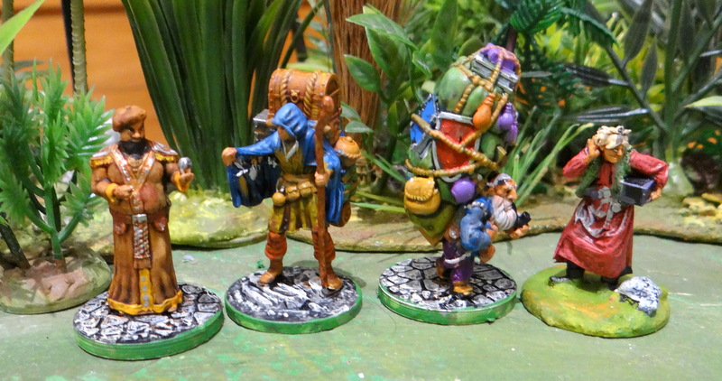 En premier quelques marchands, du plus riche au plus pauvre. Nota : le nain est particulièrement chargé Il a de tout, je l’appelle Amazone !