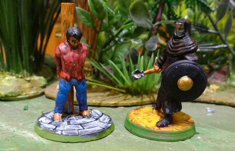 Deux modèles qui trainent sur ma table. Un prisonnier pour Congo (ou autre) et un mahométan égaré (plutôt bizarre avec son masque de fer !), je vais affiner un peu son bouclier ……