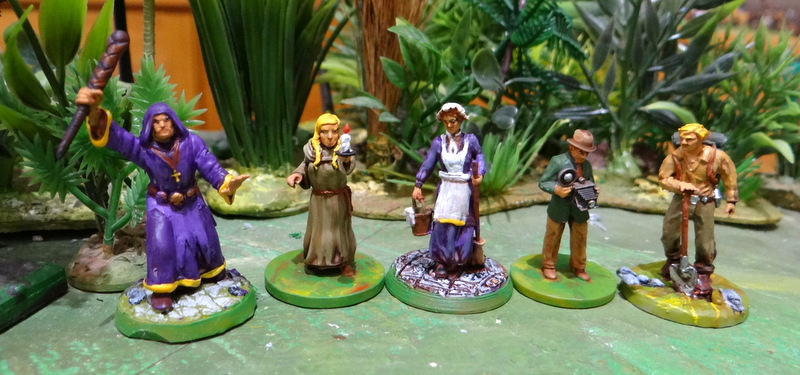 J’ai imprimé dernièrement ces figs destinées primitivement à « Call of Cthulhu ». Je vais les intégrer dans ma boite Pulp où elles trouveront tout à fait leur place. De gauche à droite : un chef de secte, une nonne, une servante, un jeune reporter photographe et un aventurier pilleur de tombe.