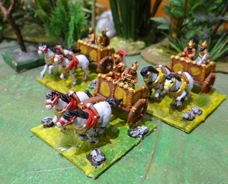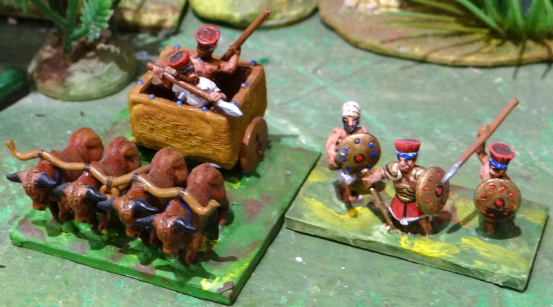 Essex 15mm offre quant à lui un char à bœufs philistin copie conforme au dessin de Funcken dans un de ses livres sur les armées du monde. Nettement moins dynamiques les gonzes !