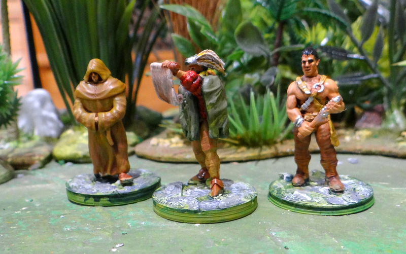 Impressions menées en parallèle des Egyptiens, les civils médiévaux 25mm avec un crieur public, son garde du corps et le curé du village.