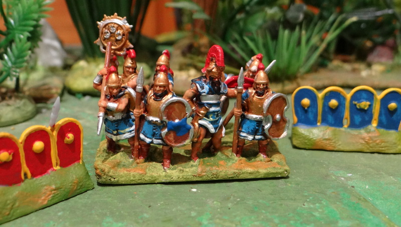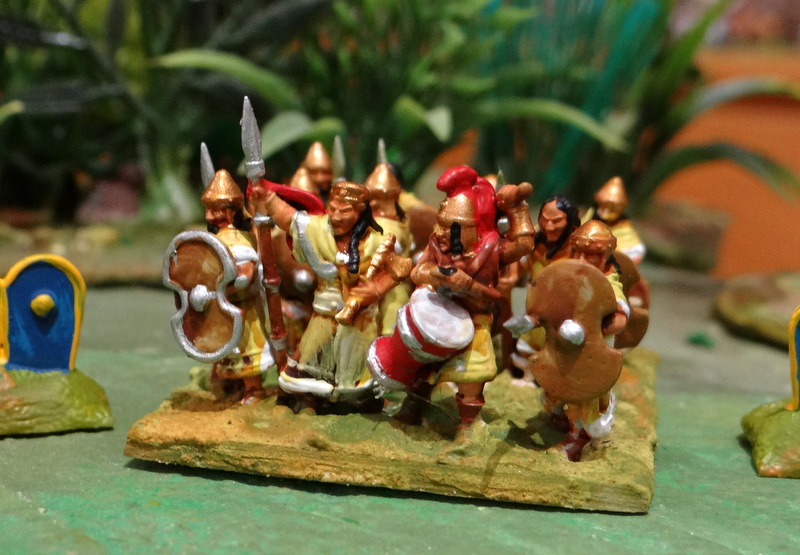 Et 8 gardes en cuirasse. On notera que j’ai inclus un tirage de Goliath ( de la gamme Hébreux) dans l’effectif, tous les Hittites ne sont pas des gringalets.