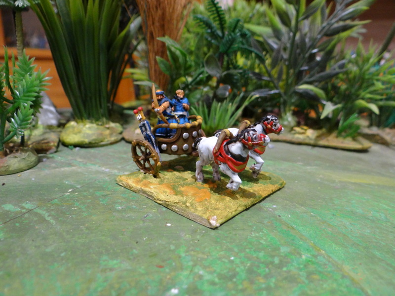 Je commence par un char syrien supplémentaire équipé d’un archer, l’unité passe ainsi à 4. Mon armée hittite aligne donc, pour l’instant, 13 chars en 15mm. Pour mémoire, j’ai 22 chars égyptiens.