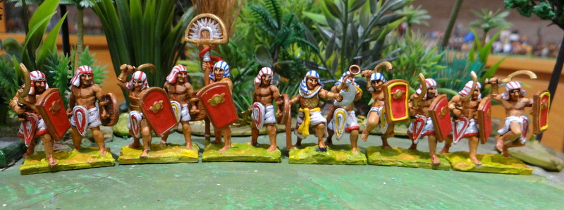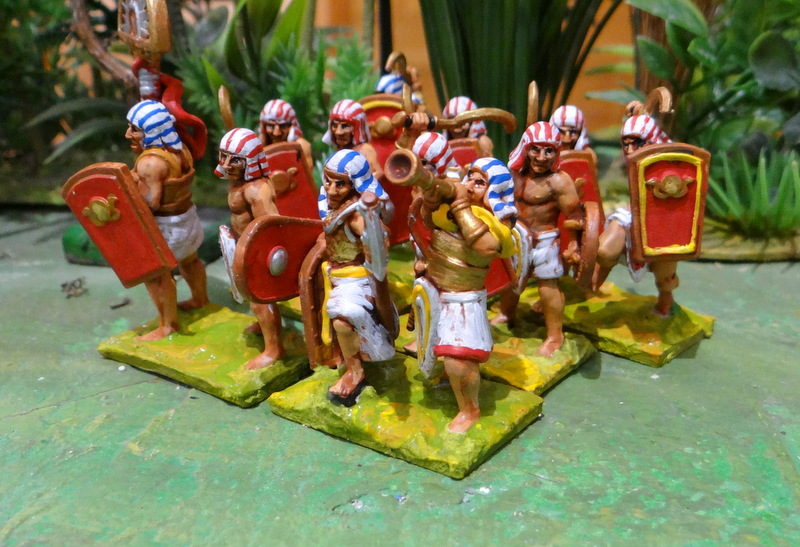 Une unité de guerriers égyptiens de base. Torse et pieds nus Quelques « thorax « renforcés ! Ils ont tous le Khopesh, les lanciers étaient surtout numides.
