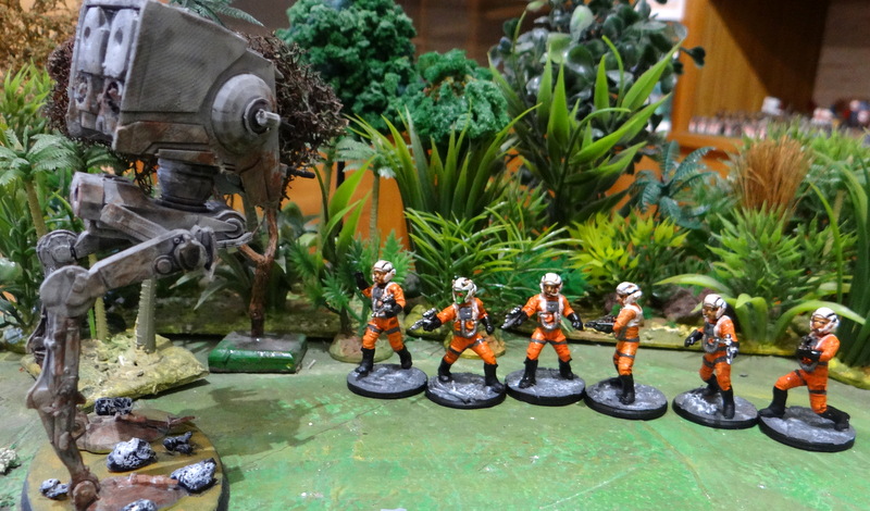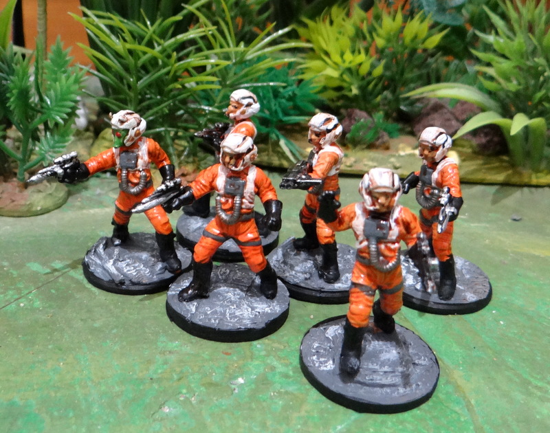 Une escouade de pilotes de la République en mission terrestre. Figs 25/28 imprimées par mes soins à partir de fichiers Thingiverse compatibles « Légion ». Le site propose une grande quantité de modèles pour le jeu ST » légion » d’Atomic mass game qui met de base en scène des figs de 32 mm au moins.