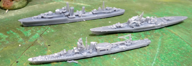 Comme il y avait de la place sur le plateau j’y ai joint quelques destroyers. Au fond le UK Tribal sister ship de 27 modèles, et 2 destroyers japonais le Takao et l’Agamo. Bilan l’impression fonctionne très bien à cette échelle. Je m’arrête là.