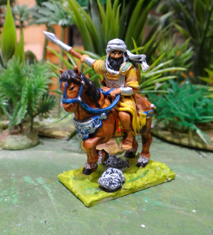 J’ai un peu avancé en ce début de semaine avec ce premier « Arabe Abbasside » en 25 mm (ramené à l’échelle de 93,5%). La fig est globalement « grosse » (un gros 25 style ESSEX) et donc facile à peindre. La tête du cheval est peut être un peu petite encore que …. les chevaux arabes ont une tête fine !