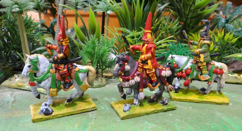 Trois Daimyo en balade. Les Daimyos sont des Seigneurs terriens, gouverneurs de fiefs ou régions, Ce sont les vassaux des Shoguns. Ils entretiennent des armée personnelles; Ils ont tous des noms imprononçables que je vais devoir rechercher sur internet.