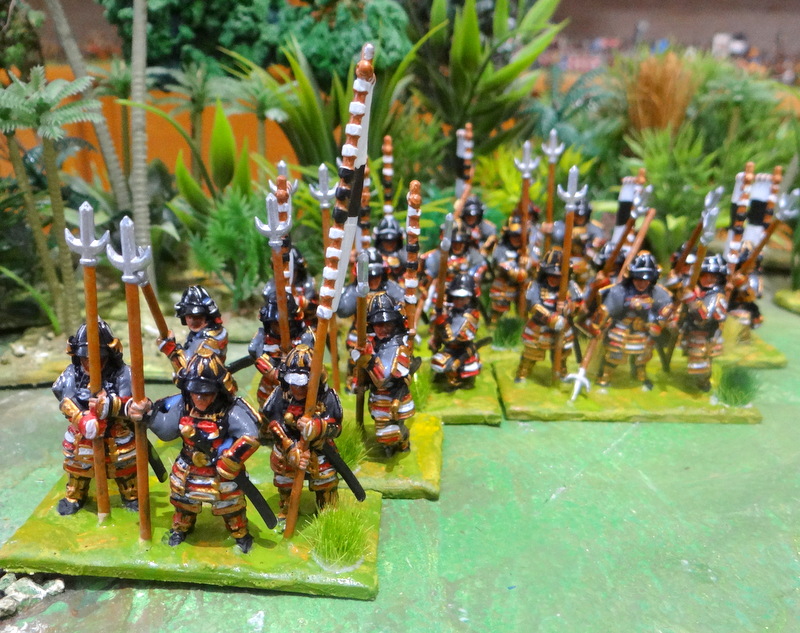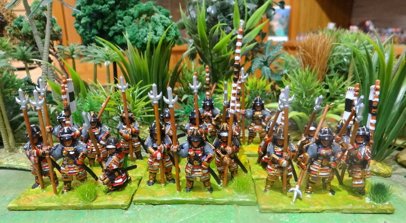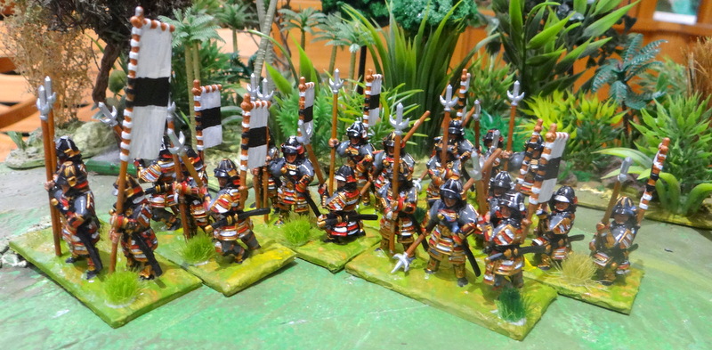 Le clan Yamakazu est de sortie. Equipés de Yaris ( une sorte de lance au fer original qui existe avec des formes différentes) ces samouraïs peuvent aussi se battre en ordre serré, ce qui ne doit pas être évident.