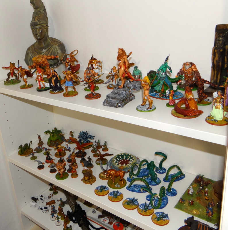 Cliché d’une de mes étagères mythologie grecque. J’ai pris beaucoup de plaisir avec ces peintures d’autant que la mythologie grecque c’est plutôt ma tasse de thé ! .