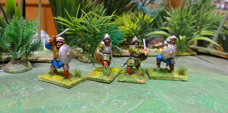 Je suppose que c’est historique : les 2 de droite ont des boucliers déjà vus chez les « jinetes » des guerres de la « reconquista ».
