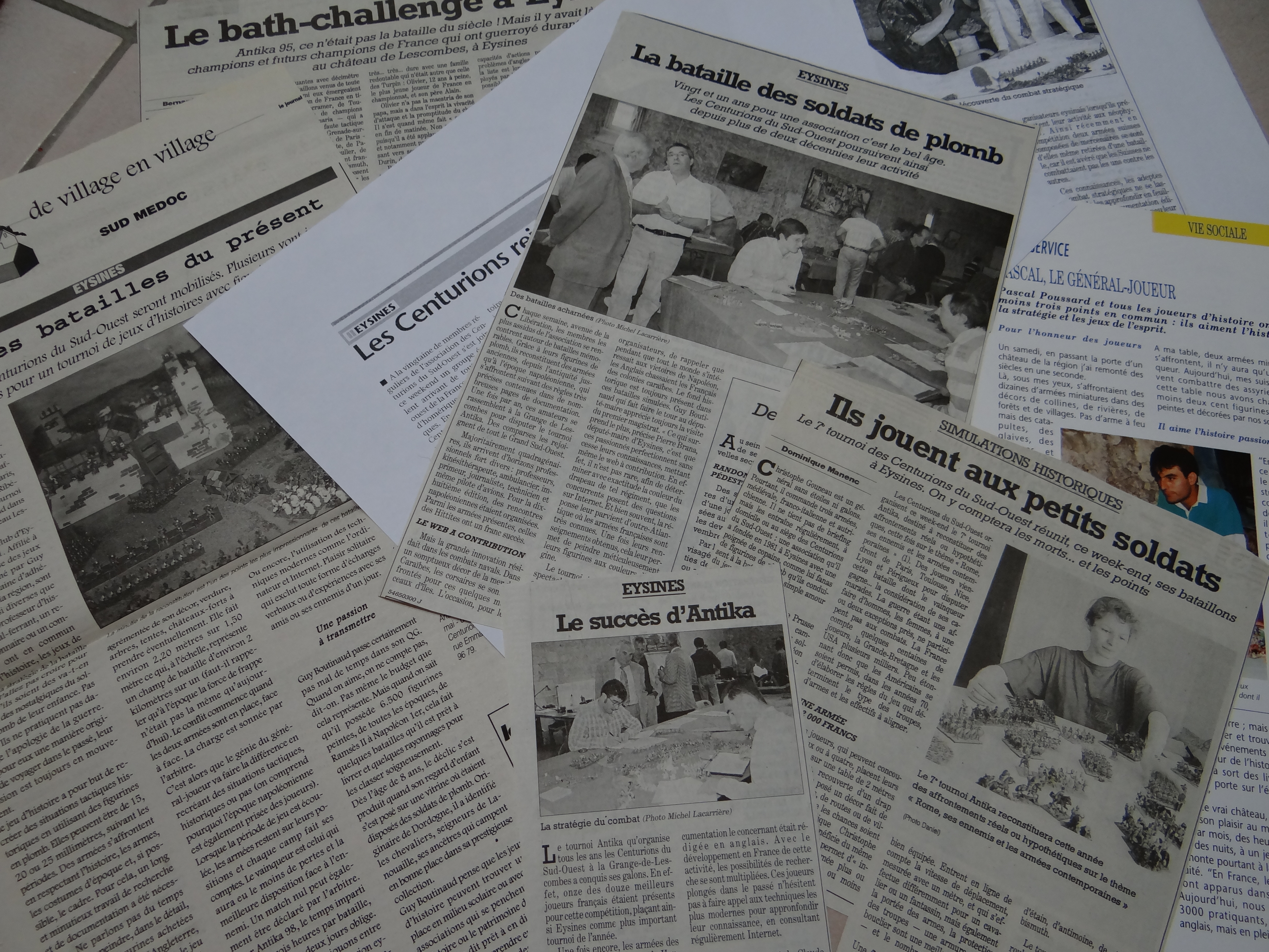 ANTIKA est né pratiquement avec le club. Le premier » ANTIKA » digne de ce nom s’est tenu dans le vieux Bordeaux en 1982 avec 8 tables et une dotation pour le vainqueur (une armée 15mm saxonne de chez Donnington gagnée par un Toulousain). Personnellement je n’oublierai pas cet ANTIKA là car lors du repas de midi, le serveur me renversa le plat de confits de canards sur l’épaule !! Au fil des ans ANTIKA s’est développé jusqu’à atteindre une vingtaine de tables fin 80/début 90. Depuis l’installation du club dans la commune d’Eysines, la mairie soutient le club. Elle met à sa disposition non seulement une salle dédiée mais ANTIKA se tient tous les ans dans les dépendances d’un château rénové . De plus, ces années là, ANTIKA « ratisse » large, des amateurs de Paris, Bourges, Toulouse, Carcassonne, Limoges, Périgueux s’y côtoient et repartent, au moins, avec ce qui fait le renom de Bordeaux, une bonne bouteille.