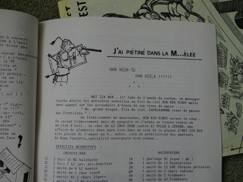 On y retrouve par exemple des listes d’armée au chapitre : « la meilleure armée, c’est la mienne », des comptes rendus de rencontres sous « j’ai piétiné dans la mêlée » et des informations club sous » les confidences du gégéne ». Le tout est illustré par des dessins plus ou moins réussis fournis par des adhérents.
