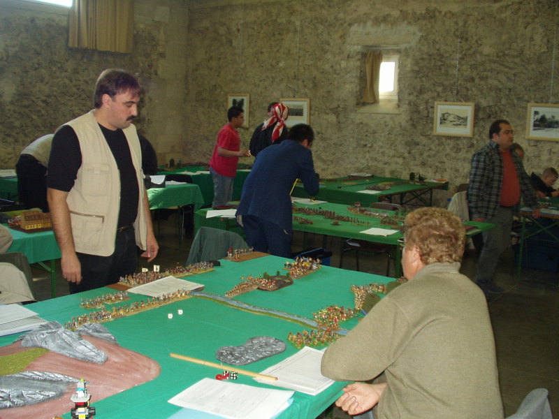 « Que dire de la partie WWII sur la règle « Cambrai to Sinai » ( les CSO ont de la suite dans les idées, Non ?) réactualisée en 98 par G Schahl qui dura 3 mn après 3 heures d’installation du décor ! En effet après le placement initial, un bombardement massif détruisit totalement l’ennemi au premier tour et ce bien que 3 essais différents aient été joués ! Le désespoir du wargamer je vous dis.