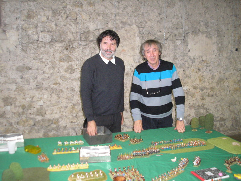 Le « napoléonien » est juste approché avec des figurines TERANA plates et une version napo de la règle antique le tout concocté par un de nos membres devenu prof d’histoire on l’aurait parié ! Elle s’appelait : « des pyramides à Waterloo ».