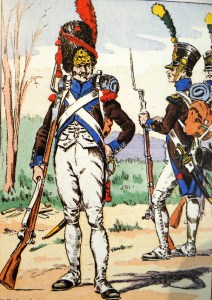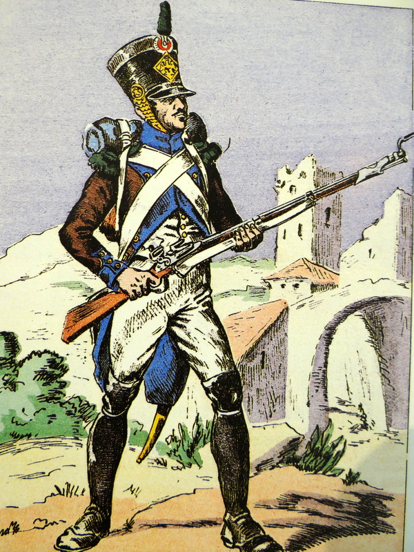 L’escouade du 69éme de ligne quant à elle arrive par la route de Madrid éclairée par ses voltigeurs et encouragée par « la fripouille » son jeune tambour plein d’allant.